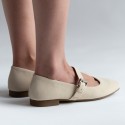 ویژگیها: جنس پارچه کفش مرغوب وارداتی کرم رنگ با بافتی زیبا ظاهری شیک به کفش شما میدهد، اکسسوری ضد زنگ و وارداتی، بسیار سبک و راحت، همینطور که از اسم باله مشخص هست که زیره بسیار نرم و سبکی دارد.